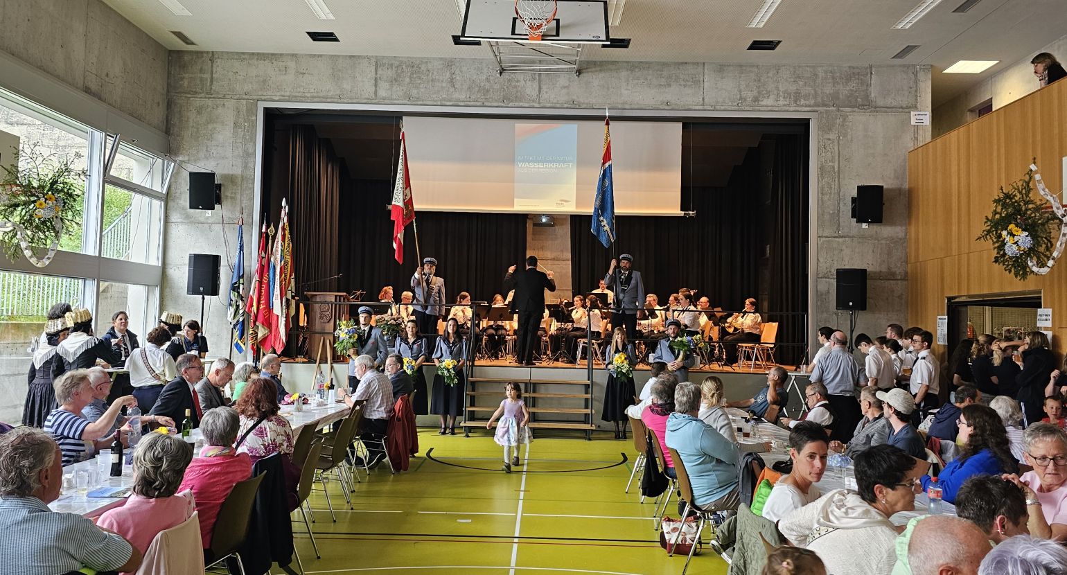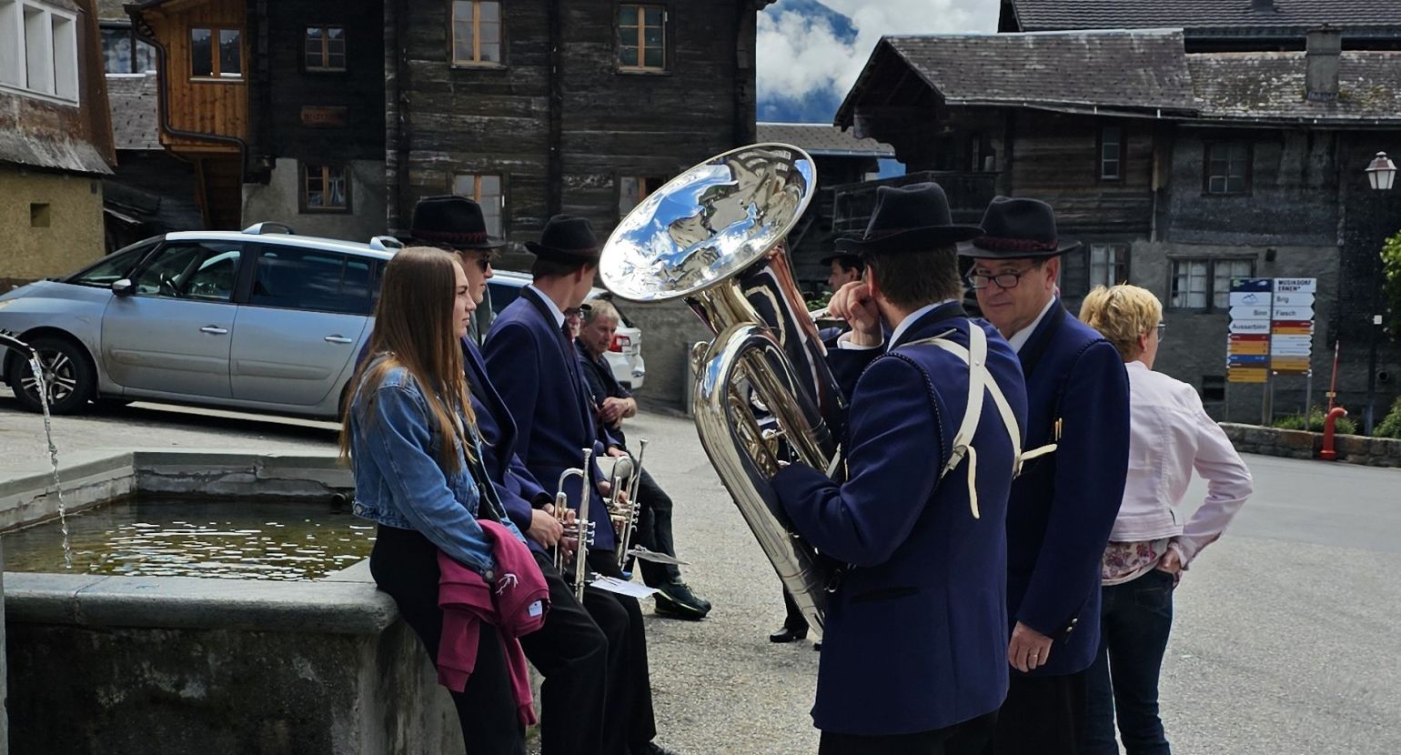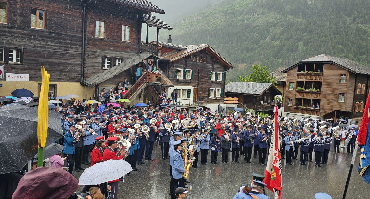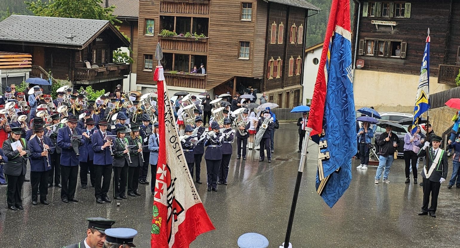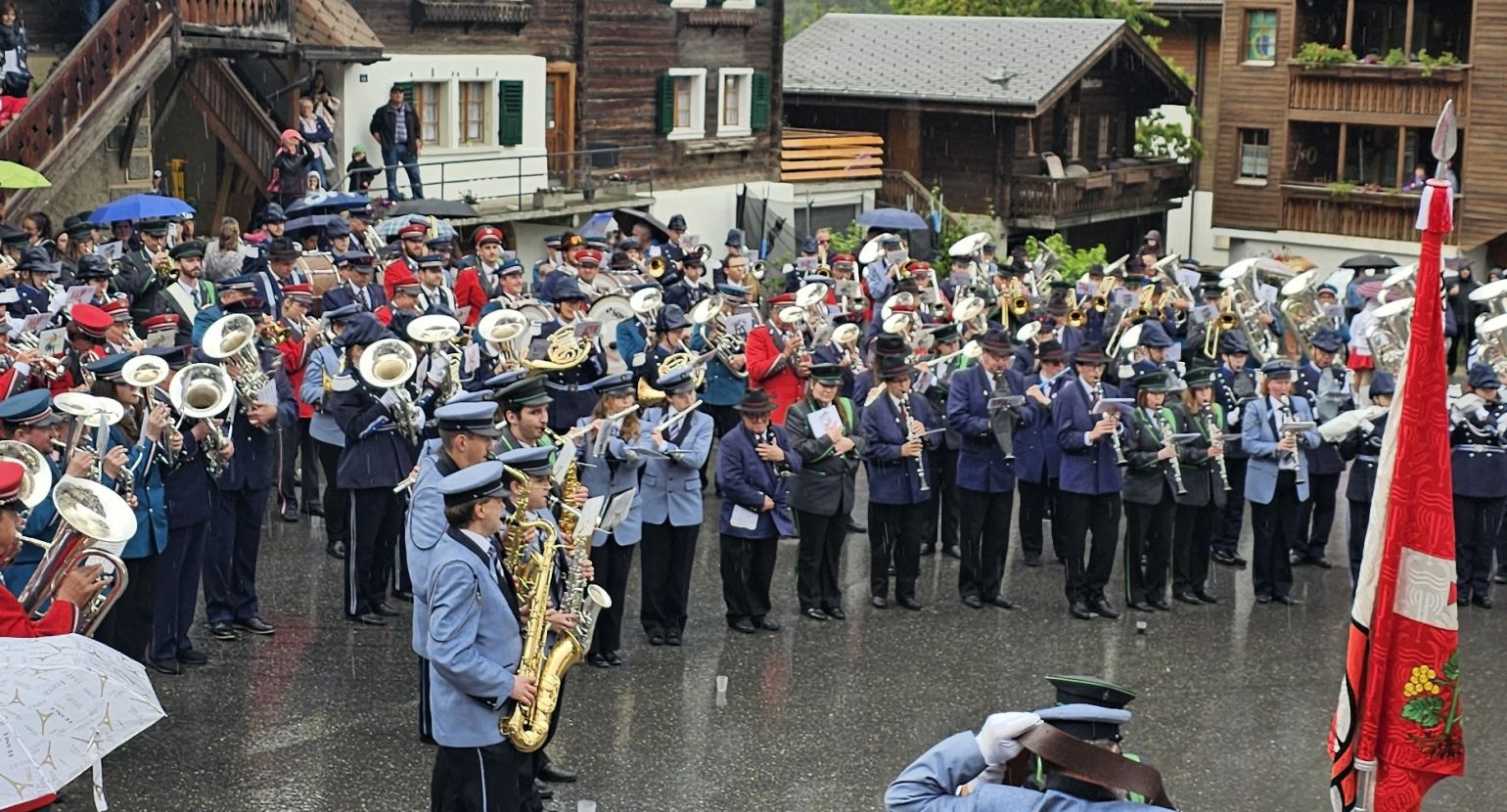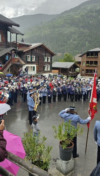 Am Samstag, den 15. Juni 2024, fand unser Bezirksmusikfest in Grengiols statt. In diesem Jahr war es besonders, da zwei Einmärsche und ein Gesamtspiel zwischen diesen beiden Einmärschen stattfanden. Der Festakt wurde dann jedoch von einem Regenschauer überrascht, sodass improvisiert werden musste. Das Gesamtspiel wurde abgekürzt, und die Festgemeinschaft zog weiter in die Mehrzweckhalle in Grengiols.