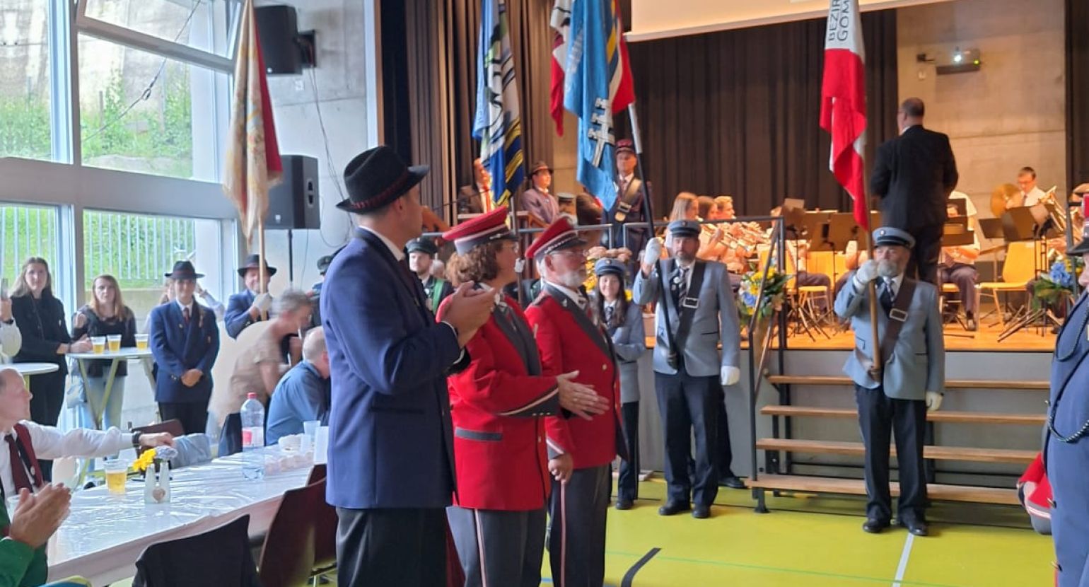 In der Halle stand dann unser Auftritt auf dem Programm. Direkt danach traten die Jungmusikanten unseres Bezirks auf. Das musikalische Niveau war überragend. Mit nur vier Proben zeigten unsere Jungmusikanten eine hervorragende Leistung. Gratulation!