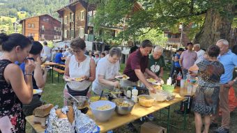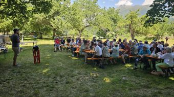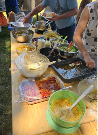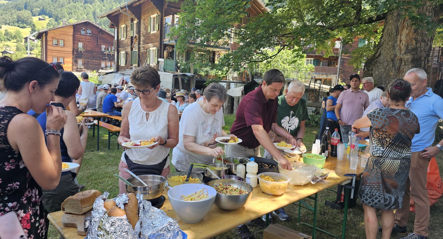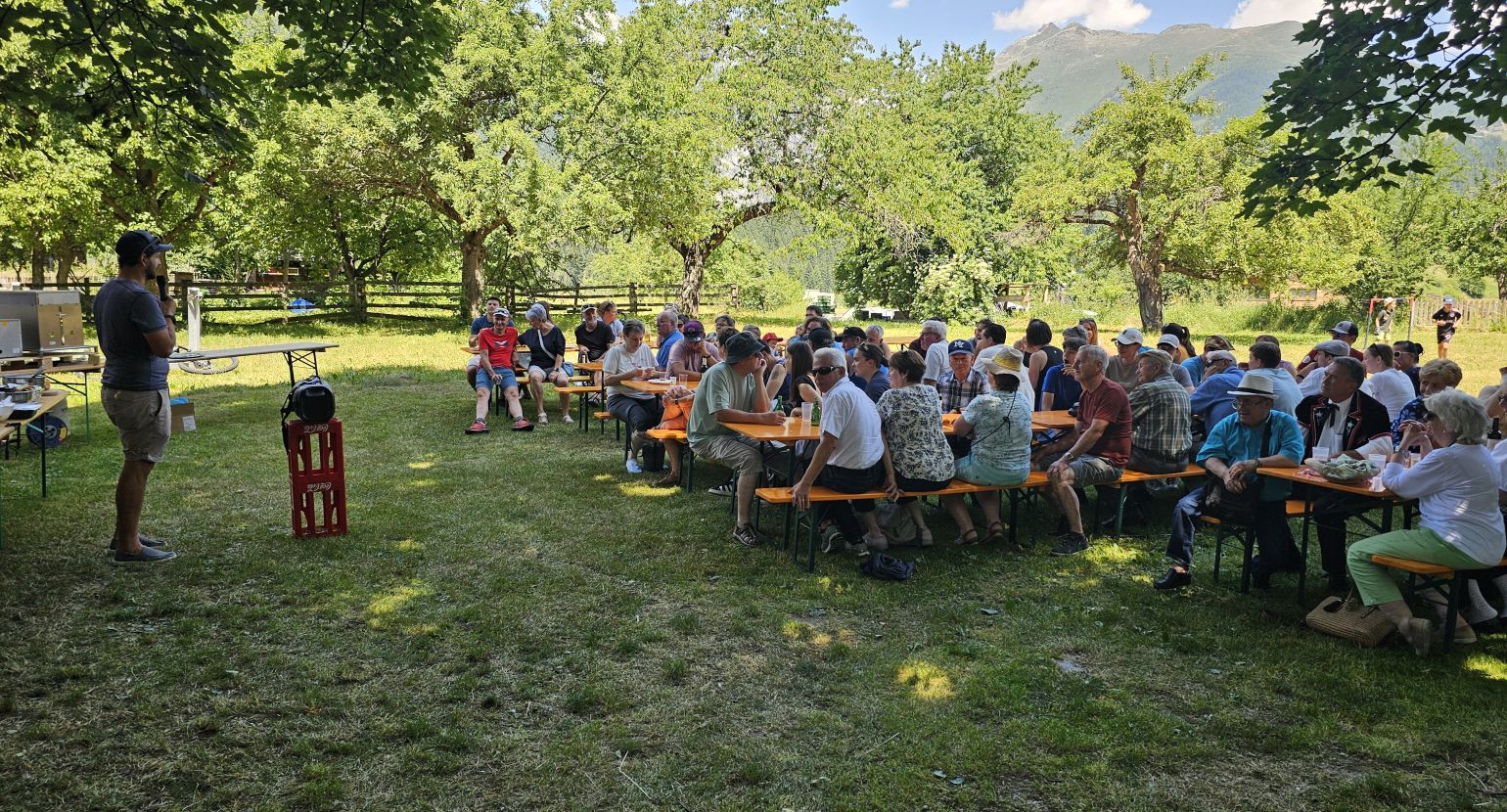 Nach dem offiziellen Teil konnten wir es etwas lockerer angehen: Tenüerleichterung war angesagt. Alle Helferinnen und Helfer unseres Musikfests, die Familien unserer Musikantinnen und Musikanten sowie unsere Veteranen versammelten sich am Mittag beim grossen Ahorn im Mättelti zum traditionellen Familientag und Helferfest. Dieser Tag hat bei uns eine lange Tradition und bildet den krönenden Abschluss unseres Musikjahres nach den Musikfesten im Juni.